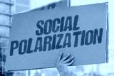 "Social polarization" on worn cardboard. Highlights the increasing divide between groups. DIVISIONS. IDEOLOGIES. FACTIONS. TENSIONS. CONFLICTS. DISCORD. FRAGMENTATION