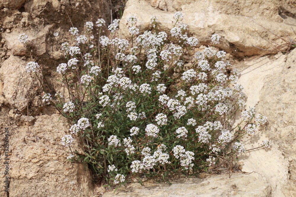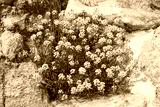 Small wild flowers growing among the rocks