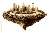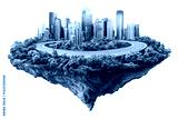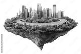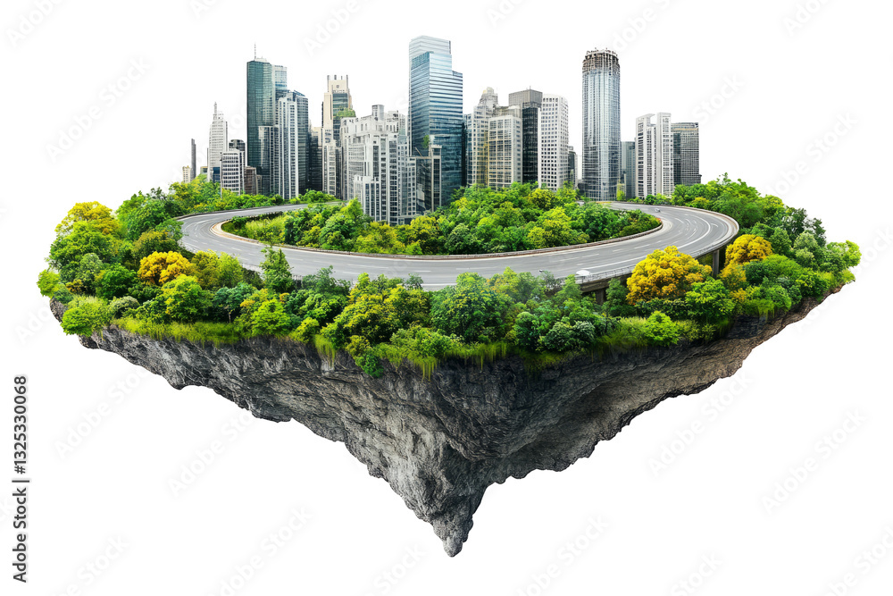 Floating City With Green Road Isolated On Transparent. Conceptual Eco Urbanism And Nature Harmony