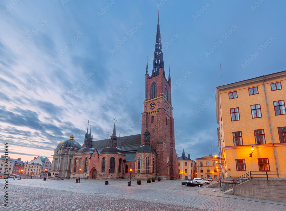 Historic Riddarholmen Church and square at dawn, Stockholm, Sweden