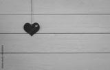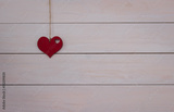 Valentine's heart hanging on natural cord. Wooden white background. Retro style.