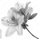 A delicate pink azalea flower in full bloom, showcasing intricate petals and vibrant green leaves against a dark background.