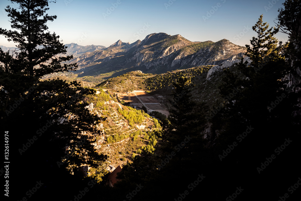 Kyrenia Mountain Range and road to St Hilarion Castle. Kyrenia District