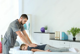 Physiotherapist working with patient in clinic