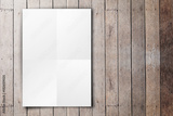 Empty white poster hanging on grunge wood plank wall,Mock up tem