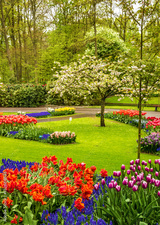 tulip flowers yellow-red tulips in Keukenhof garden park, Netherlands, Holland