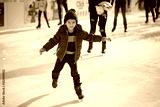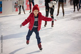 Happy boy with red hat, skating during the day, having fun
