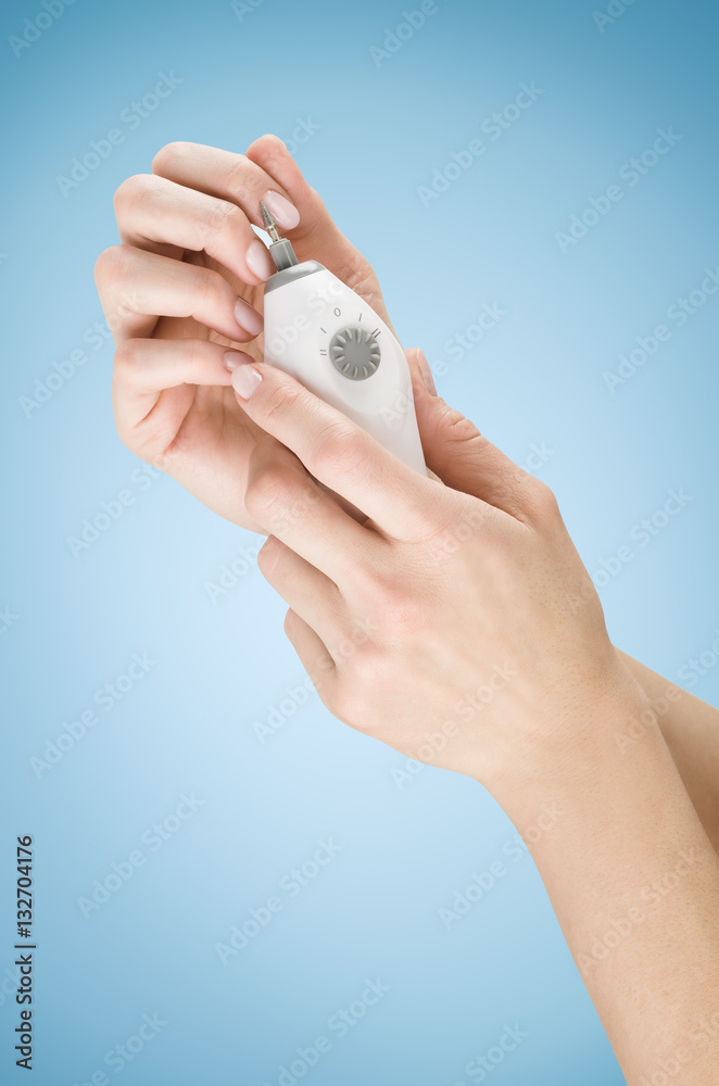 Woman's manicure concept for advertising. Background with beautiful manicured female hands and nails. Skin, body care or spa treatment concept with natural nail manicure