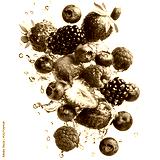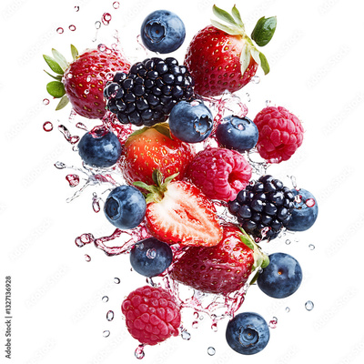A Burst of Fresh Berries Blueberries Raspberries Falling Into Milk Isolated on Transparent Background