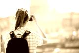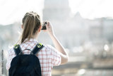 Young woman takes a picture of Saint Peter Cathedral , Rome, It