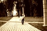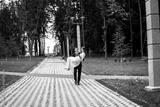 happy bride and groom at a park on their wedding day