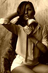 Fashion photo of young magnificent woman. Girl posing. Studio photo