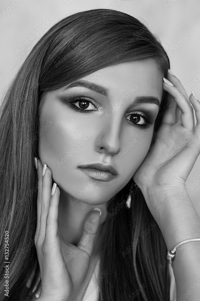 Fashion photo of young magnificent woman. Girl posing. Studio photo