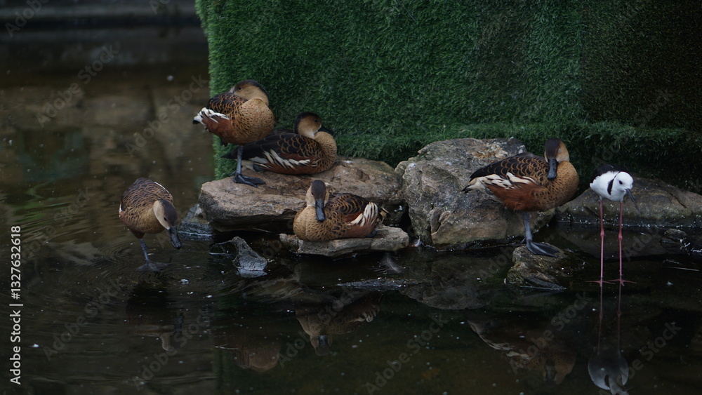 Portrait of a Beautiful Female Mandarin Duck Aix galericulata, a species of perching duck native to the Eastern Palearctic
