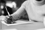 African american teen solving the school assignment for literature class lesson, writing descriptive or narrative ideas for a new essay. Girl preparing with research done for the course. Close up.