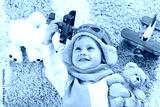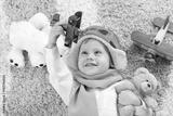 Happy kid boy playing with toy airplane