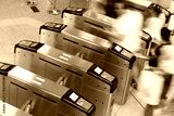 people going through the turnstile in the subway