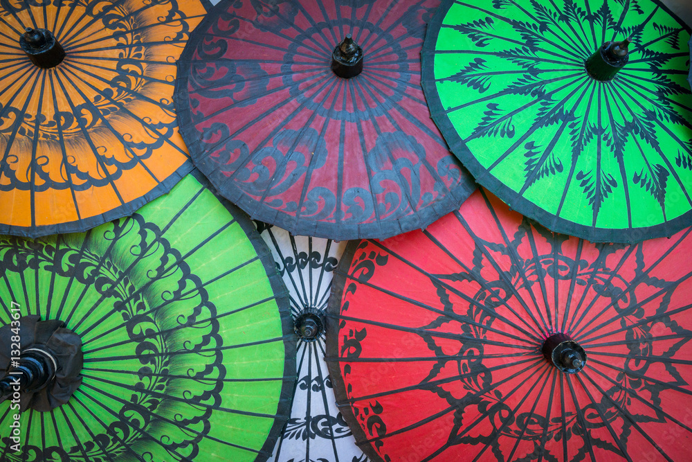 The texture of Burmese umbrella one of the famous traditional souvenir in Myanmar.
