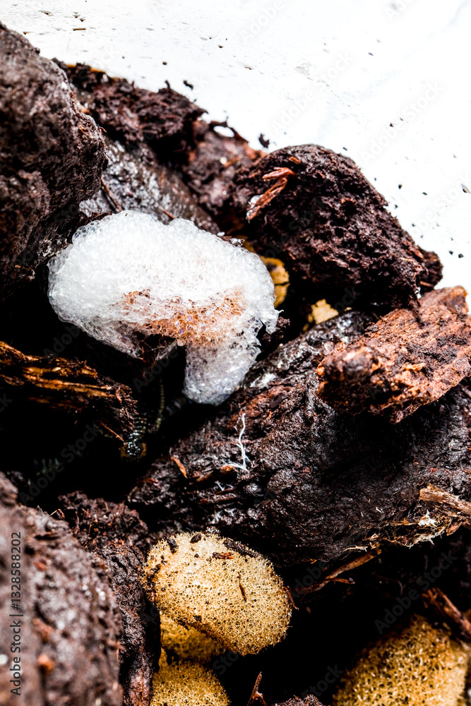 Leech cocoons on leech farm or laboratory. Medical leeches for hirudo therapy