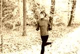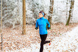 running in the wintry forest