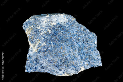 Raw dumortierite mineral specimen with a textured blue surface isolated on a black background.