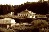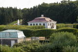 Elegant buildings surrounded by lush greenery at Peterhof in summer, showcasing the beauty of Russian palatial architecture and gardens