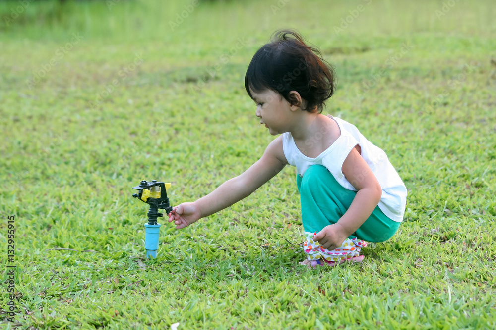 Girls playing in the lawn.