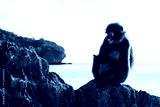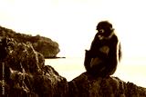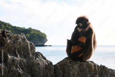 Dusky Spectacled langur with yellow baby on the beach at Ang Thong Island.
