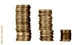 Stacks of coins arranged by size showcasing different denominations, cut out (PNG)