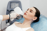 A laser hair removal procedure in an aesthetic clinic focusing on client hair removal. Concept of advanced hair removal techniques and personalized skincare.