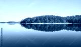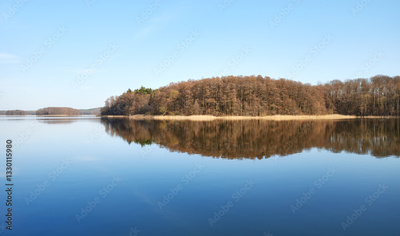 Panoramic symmetrical view of Lake Barlinek, West Pomeranian Voivodeship, Poland.