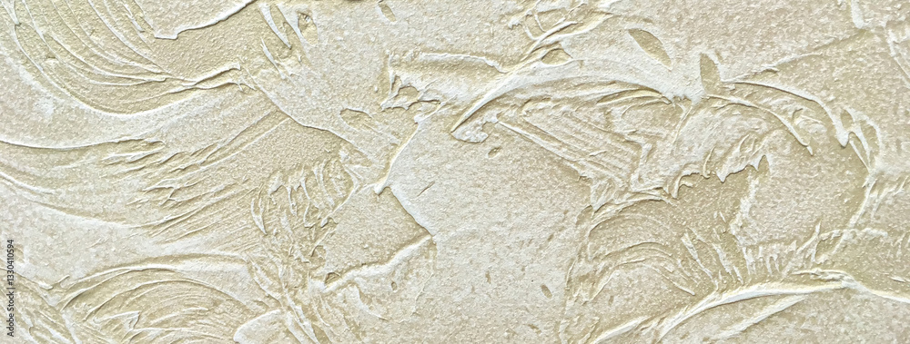Texture decorative beige plaster background imitating the old peeling wall, macro. Obsolete sand cracked backdrop