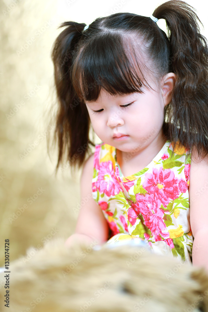 Happy baby girl using tablet computer
