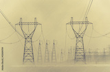 Hight voltage power transmission tower. Power supply and energetics concept. Toned.