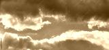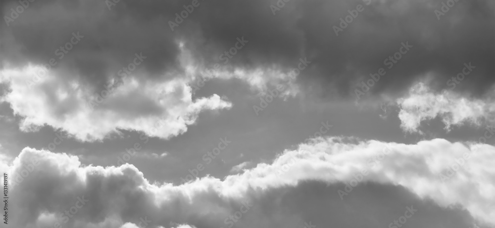 Dramatic stormy sky background. Dark fluffy cloudy sky. Halloween cloudscape background concept.