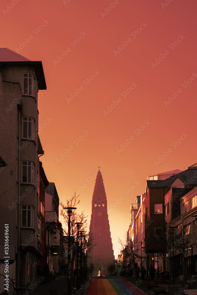 Photo of Reykjavik Hallgrimskirkja Church in city center and buildings