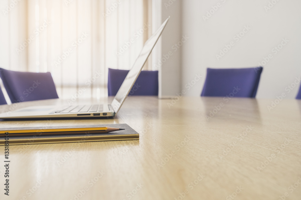 Laptop on Table with seats Business Office Meeting Boardroom
