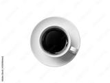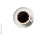 Top view of a coffee cup with swirl latte art isolated on black background