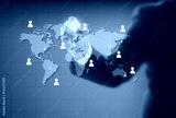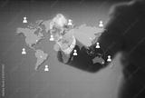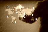 Businessman drawing a world map and networking communication onl