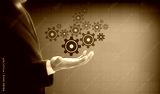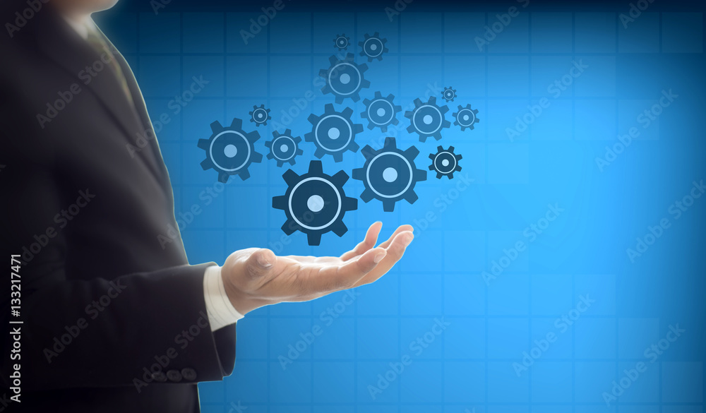 Businessman show gear for engineering business , business connec