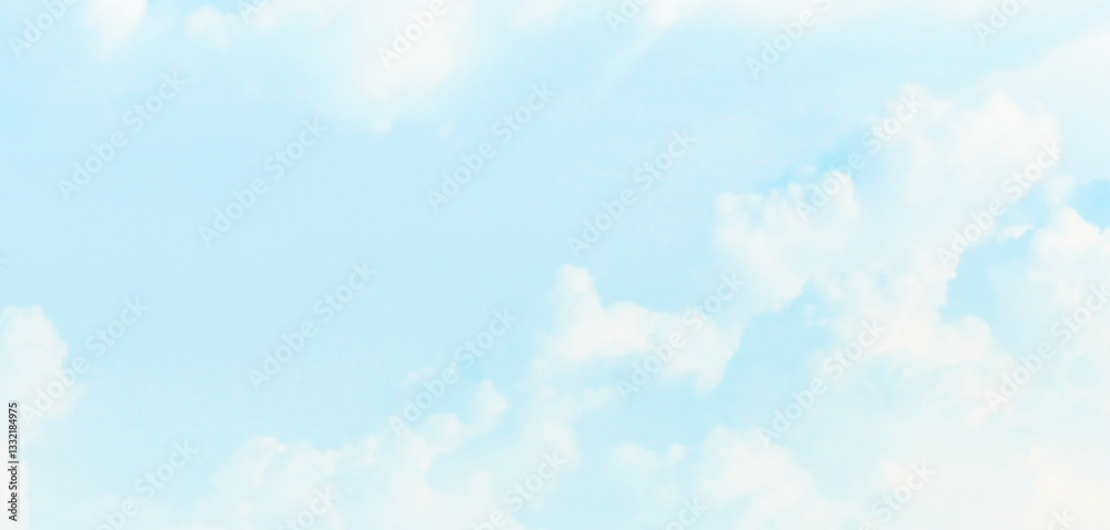Blue sky pastel with white cloud. Cumulus clouds. Cloudscape blur background. Beautiful sky in the morning. Freedom of life, New life beginning and Positive thought and energy concepts.