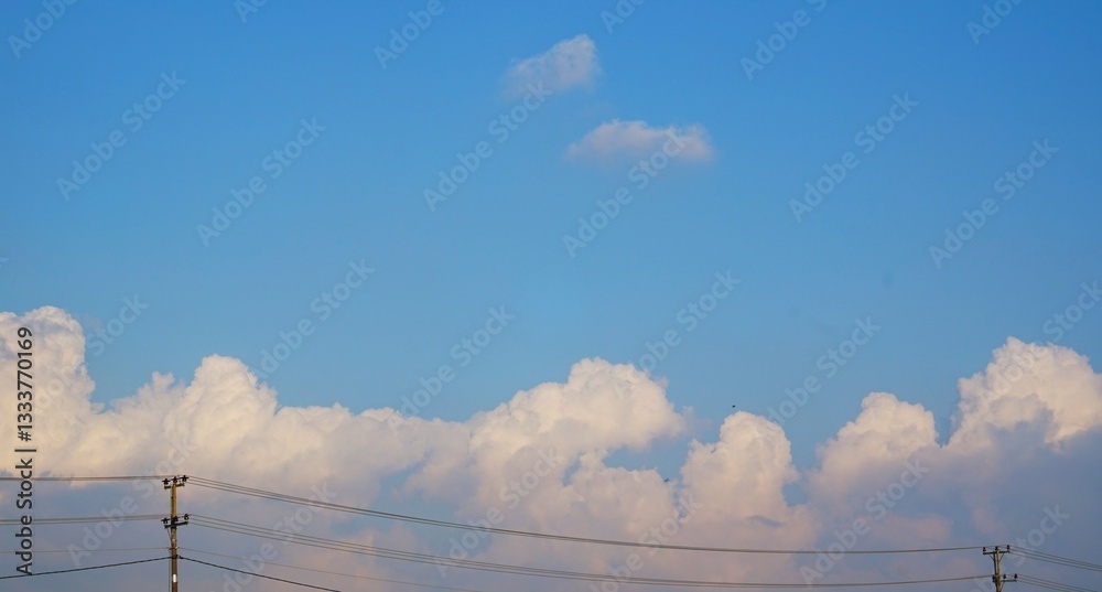 beautiful clouds in the sky, blue sky with white clouds clumping together, looks natural and fresh