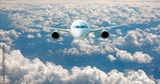 White passenger airplane flying in the sky amazing clouds in the background - Travel by air transport