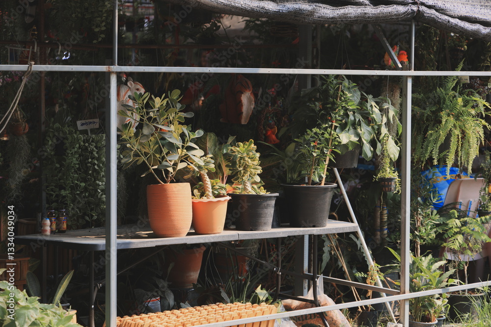 Potted Plants Beautifully Displayed in a Serene Greenhouse Environment for Optimal Growth