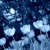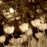 old yellow tulips on a defocused abstract background