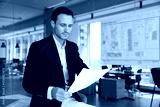 Focused Latin business executive man reading paper legal document, formal letter in office space alone, analyzing financial sales report, statistic data, doing paperwork, making decision
