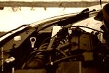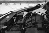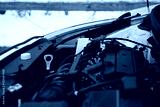 Car engine closeup with copy space. Outdoor photo showing concept winter car problems with ignition.