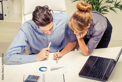 Business people discussing the charts and graphs showing the results of their successful teamwork