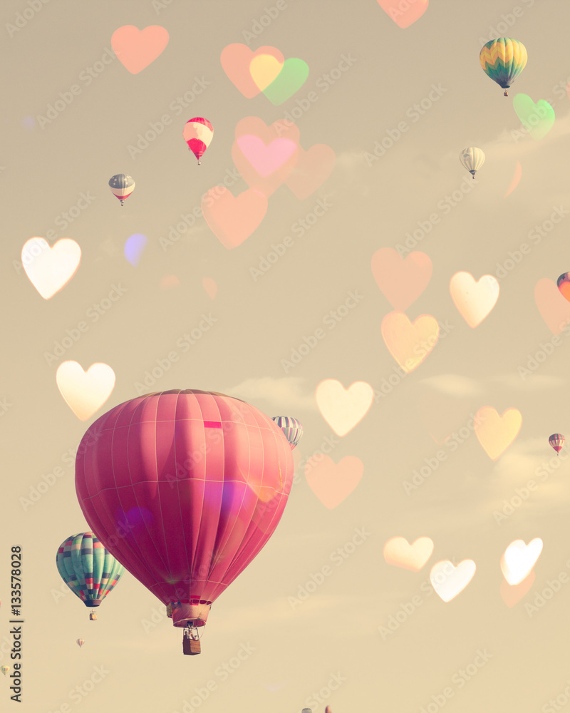 Vintage hot air balloon with heart shaped overlay
