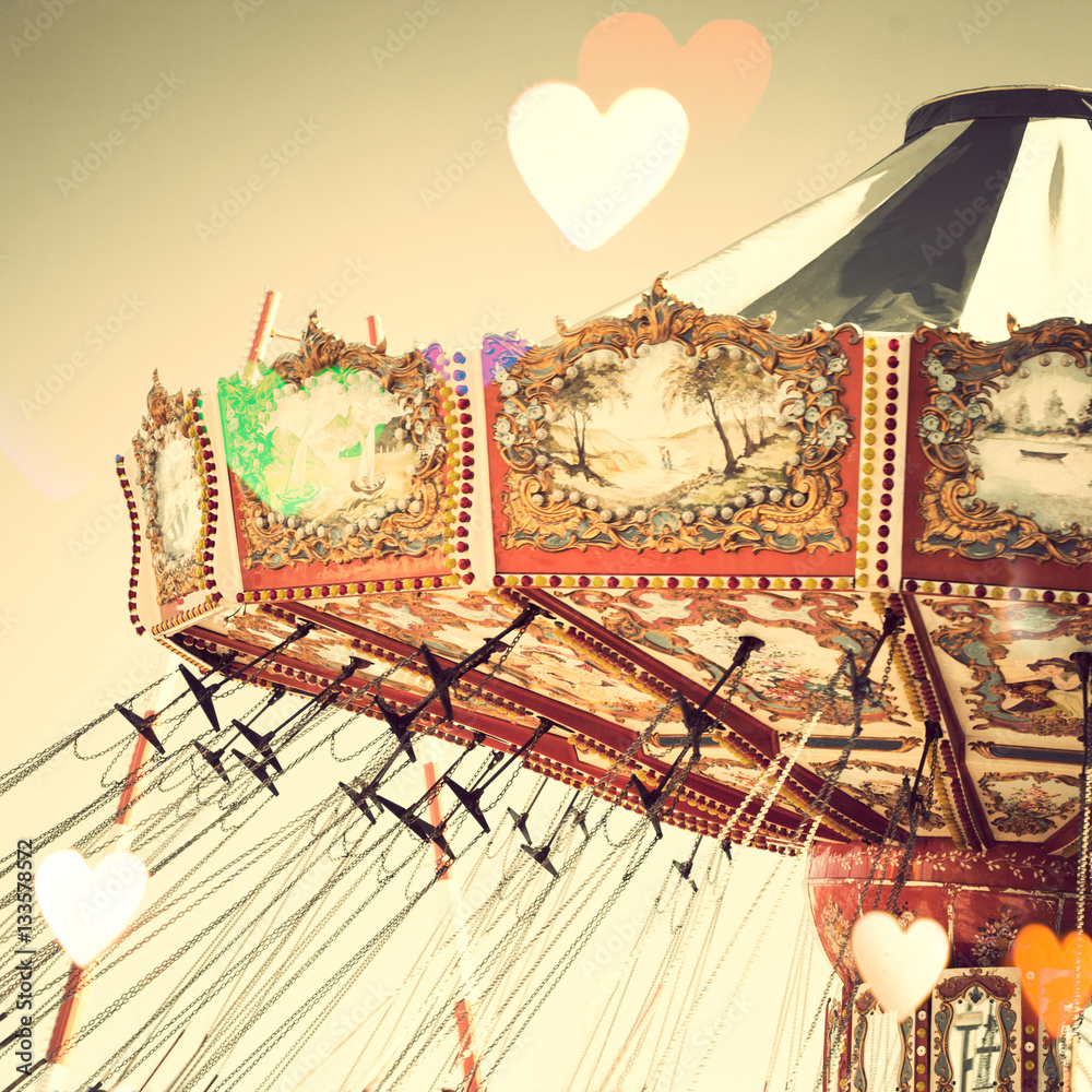 Vintage chain swing ride with heart overlay